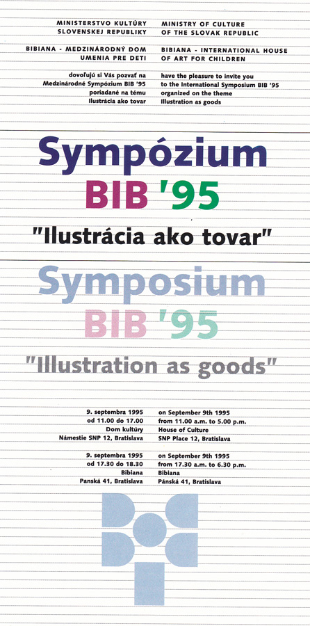 Medzinárodné sympózium BIB´95 sa konalo na tému "Ilustrácia ako tovar - jej umelecká hodnota a miesto na súčasnom knižnom trhu". Táto téma vyplynula zo všeobecného poznania neradostnej skutočnosti súčasného knižného trhu v oblasti detskej knihy. Ilustrácie na knižných pultoch sa len v malom množstve dostanú na výstavy umeleckých ilustrácií a BIB-u. Prednášatelia na tomto sympóziu sa zamýšľajú prečo je to tak, a čo robiť, aby tomu bolo inak.