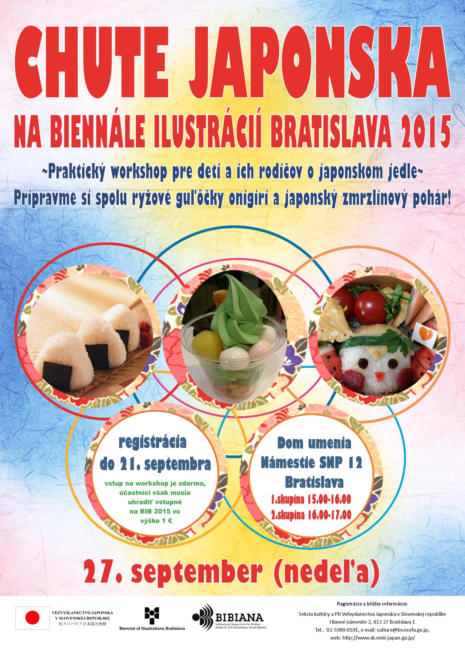 Na dielňach sa deti naučia nie len pripraviť sladkú podobu známeho japonského jedla z ryže „onigiri“ a robiť z neho napr. rozprávkové postavičky, ale dozvedia sa aj zaujímavosti o japonskej kuchyni. Lektorkou je Natsumi Kakita, osobná kuchárka japonského veľvyslanca na Slovensku a absolventka jednej z trojice najprestížnejších kuchárskych škôl na svete.