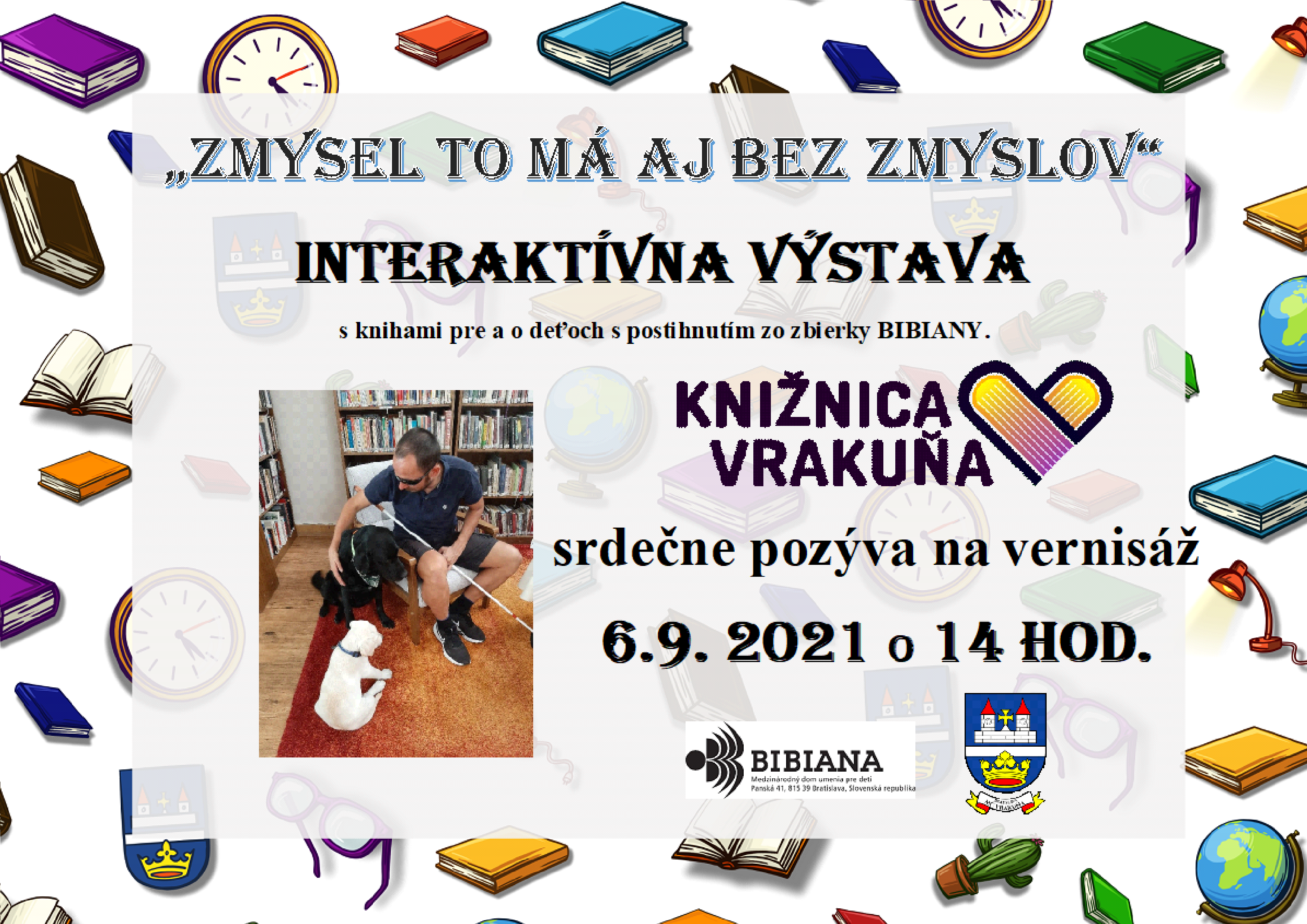 Počas mesiacov september až december 2021 máte možnosť pozrieť si a zažiť reinštaláciu interaktívnej výstavy z dielne BIBIANY v knižnici vo Vrakuni, pod názvom Zmysel to má aj bez zmyslov. Väčšinu vystavených kníh tvoria beletristické portréty detí a dospievajúcich s rôznymi typmi postihnutia. Môžete si zalistovať v knihách vydaných v angličtine, nemčine, španielčine, ale aj japončine či perzštine. Mnohé z nich vynikajú aj ilustrátorským spracovaním. Okrem kníh tu nájdete množstvo interaktívnych hier. Cieľom výstavy je detským návštevníkom predstaviť život ich vrstovníkov s postihnutím.
